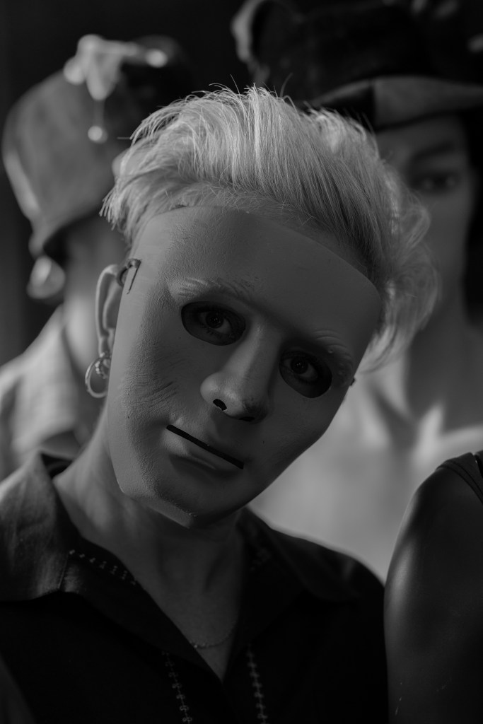 Han drev med spraymaling, og jeg fikk noen spraybokser av han. Jeg prøvde å blande det litt med oljemaling, og jeg likte det utrykket veldig godt. Jeg har alltid vært veldig inspirert og tiltrukket av gatekunst, og det litt røffe utrykket. Så jeg tenkte at jeg ville gi meg hen i dette her. Så holdt jeg på med dette en stund frem til 2019. Så kom koronaen, og da ble vi ganske isolerte. Enda mer isolerte enn vi valgte å være. Da gikk jeg i gang med denne litt absurde stilen med de store ansiktene. Disse maskelignede personene, som på en måte kan forestille det morbide som vi ofte går rundt og føler. Jeg tror folk føler slik, når man for eksempel er ute på byen. Du ser normal ut, men føler deg mer utenfor det normale. Så jeg prøvde å ta tak i det, og lagde disse karakterene, som nå har blitt mitt varemerke som du nevner, og det som folk kjenner igjen.