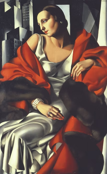 Tamara de Lempicka var opprinnelig russisk, men som mange andre flyktet hun under den russiske revolusjonen i 1917, og endte opp i avantgarde miljøet i Paris. Her gjorde hun stor suksess som art deco maler. Og da gjerne med malerier med geometriske og skulpturelle former. Ofte med temaer som glamour, rikdom, urban energi og sterke androgyne kvinner. Søkelys på kvinnelig seksualitet var i fokus og gjerne med seg selv som modell. Det som gjør henne så spennende, er at hun var en av de første kunstnerne som forsto hva det ville være å bruke sin visuelle identitet. Som for eksempel at hun kjørte sportsbil, kledde seg i moteriktige klær, og ikke minst var en del av Paris sitt kjente natteliv og bohemske miljø.