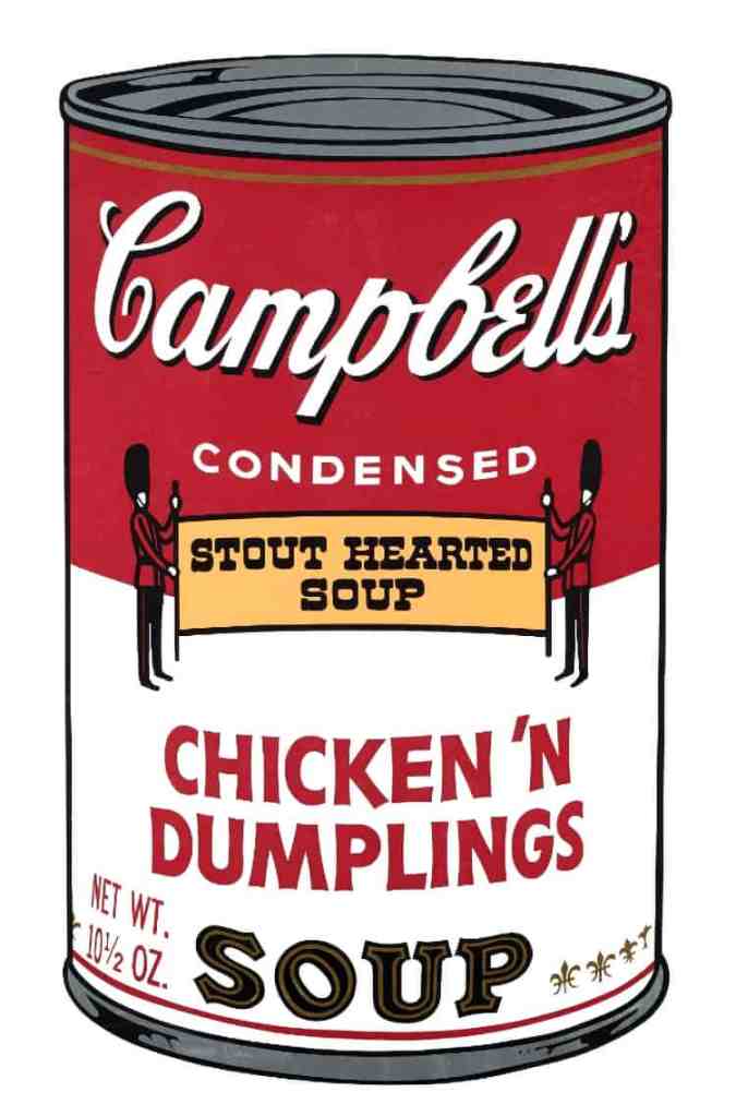 Kunstneren Andy Warhol (1928-1987) og hans Campbell`s Soup Cans er et glimrende kunstverk som bryter med den generelle oppfatningen av høykultur og lavkultur. Her tar simpelthen kunstikonet og popkunstens «far» Andy Warhol og lager noe så dagligdags som en suppe boks som motiv, og lager hele 32 malerier av dette. Ett for hver suppevariant som Campbells hadde på denne tiden. Samt til en kunstnerisk hendelse som eliten og de dannede samfunnsborgere dro, i store horder, for å oppleve i kunstgallerier. Maleriene var malt på hvite lerreter i ett identisk format på 20×16 tommer, og etterlignet trykte reklamer. Selve utstillingen ble arrangert på en måte som etterlignet butikkhyller og ga publikum en følelse om at de befant seg på et supermarked. Utstillingen skapte stor debatt om hva som kunne regnes som kunst. Plutselig var ikke skillet mellom høykultur og lavkultur like mye definert lengre, da suppeboksen var et masseprodusert hverdagsobjekt som ble løftet inn i kunstrommet på en fremragende måte. Det var også starten på Andy Warhols ikoniske karriere. Alt dette skjedde på Ferus Gallery i Los Angeles 9. juli 1962. Vi kan vel si, at fra da av ble alt lov innen kunst.