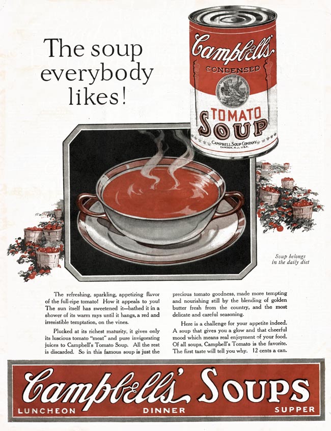 En typisk reklame plakat for Campbell`s Soup Cans